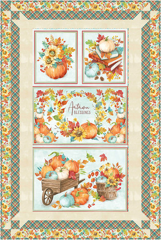 Autumn Blessings is the perfect collection to get you into the autumnal spirit. It has a delightful assortment of fabrics that capture the essence of the harvest season. Prints feature fall leaves, pumpkins, wheelbarrows and classic plaid patterns. The fiery reds, buttery oranges and golden yellows highlight the beautiful natural colors of fall. Sunflowers gleam in the sunlight. Autumn Blessings is sure to be a splendid collection to use in all your cozy quilts.