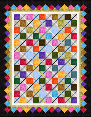 This is a new basic that features a unique texture that goes from fern foliage to reptile skin. Completely versatile and drenched with color, it comes in 20 colors and the delivery is June. Fat quarters are available for this group and can be used to make the free project.