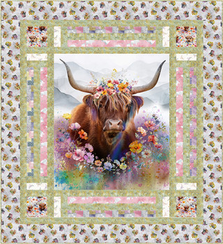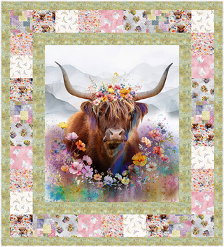 Déja-Moo strikes the perfect balance between charm and versatility. The centerpiece panel featuring a pretty longhorn cow with a wreath of flowers serves as a delightful focal point for wall hangings or other projects. The bandana patchwork print offers endless possibilities—use it for big blocks that look expertly pieced, scrappy borders, and more. A soft gray print scattered with tossed petals provides the perfect background you will reach for time and again.