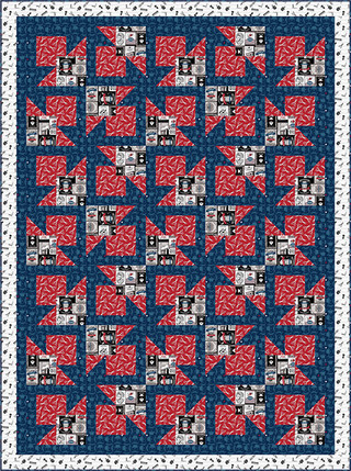 Hipster by Rodrigo Pontes is a new 9-piece collection for The Blank Quilting Corp. This group features a 24-inch panel of a barbershop scene with a top hats, barber chairs, straight razors and barber poles. Patterns include a patch, tossed scissors, combs, razors, chairs, moustaches and a biased stripe. This trendy collection has a color palette of black, white, red, blue and grey.