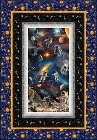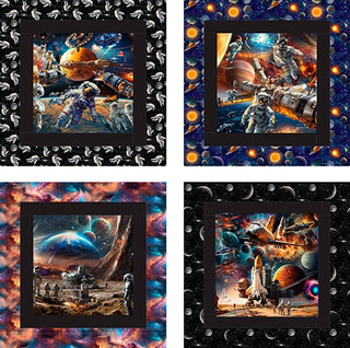 Let’s blast off with the Space Cadet collection by Francesco Moretti. Looking out the window in a space ship, you might see some breathtaking interstellar clouds filled with what looks like glowing lights. Forget about gravity and hop across the moon to collect samples for observation back down on Earth. The panel is out of this world featuring astronauts hard at work as planets orbit. Use the block panel and stripes to create a quilt for the space cadet in your life.